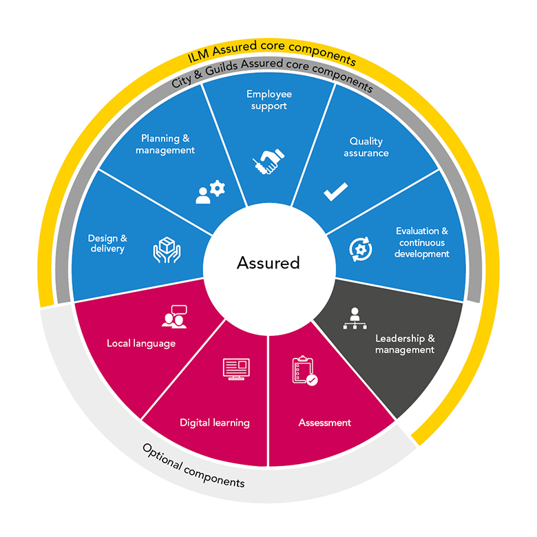 Assured validates the quality of training programmes through a rigorous benchmark model developed in conjunction with quality, learning and policy experts across ILM, City & Guilds and Digitalme. The ILM Assured standard has six core benchmark components: